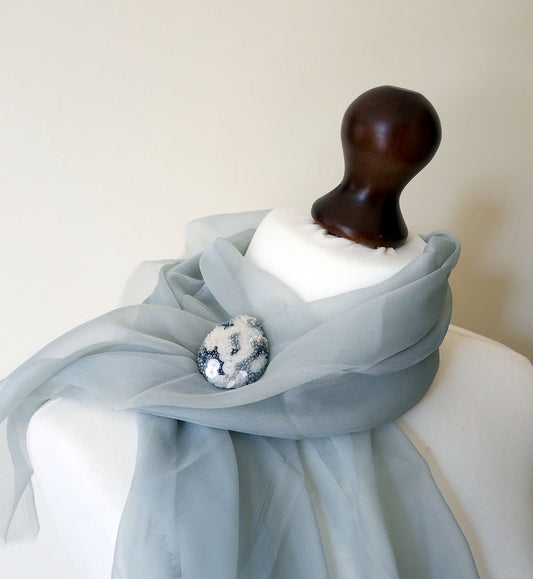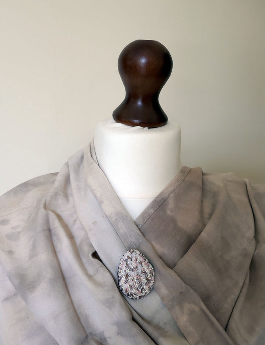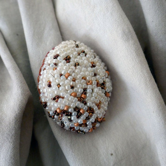 Beaded Egg Brooch - Silver and Cream Sequin Large